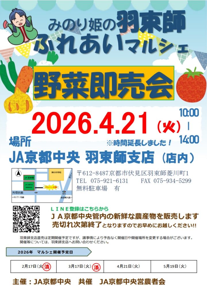 2026年4月21日(火)に「みのり姫のふれあい羽束師マルシェ」を開催します!