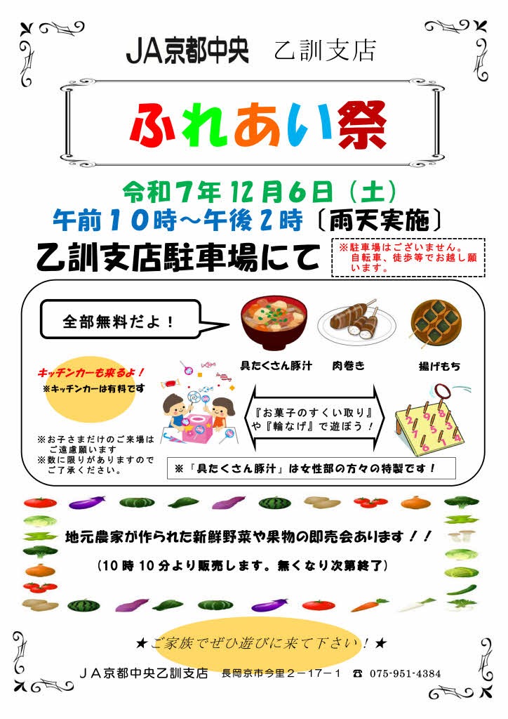 12月6日(土)に「乙訓支店ふれあい祭」を開催します!
