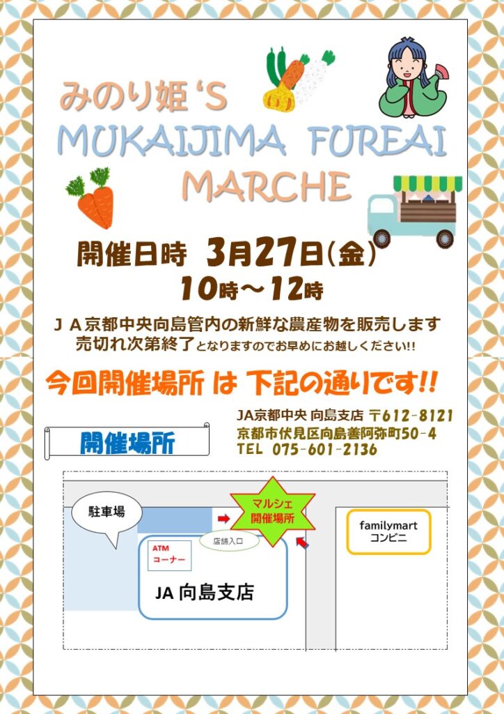 3月27日(金)に「みのり姫のふれあい向島マルシェ」を開催します!