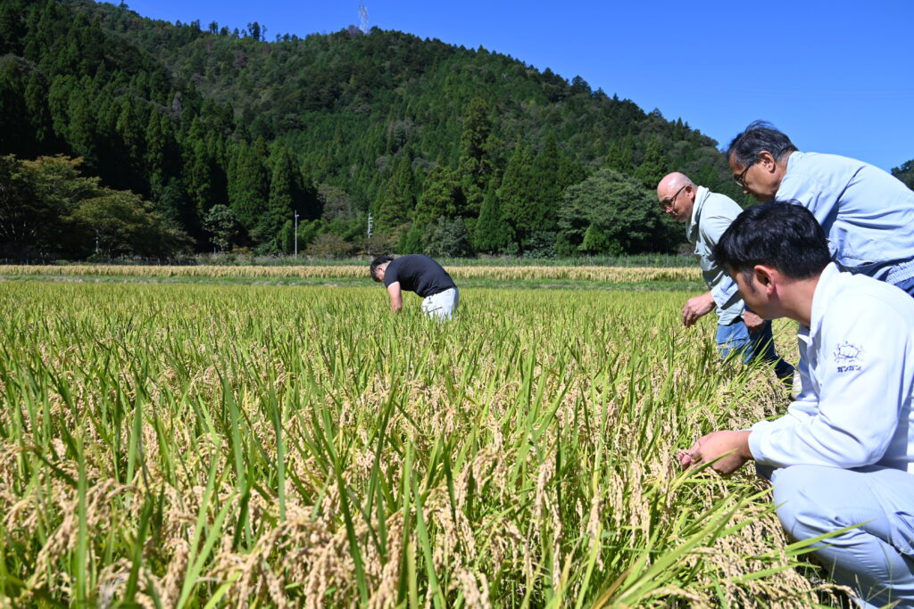 10月10日、経済部営農販売課では、岩倉支店管内の久多地域で栽培されいる京都限定の酒造用原料米「京の輝き」栽培ほ場で適期刈取調査を行いました。