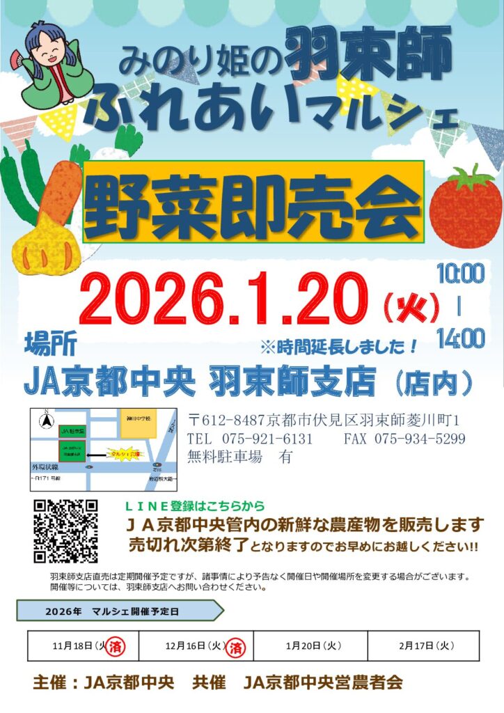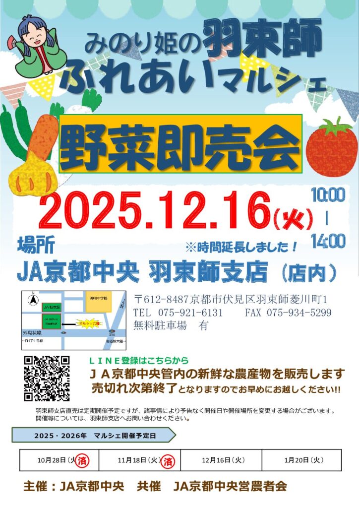JA京都中央向島管内の新鮮な農産物を販売します!!