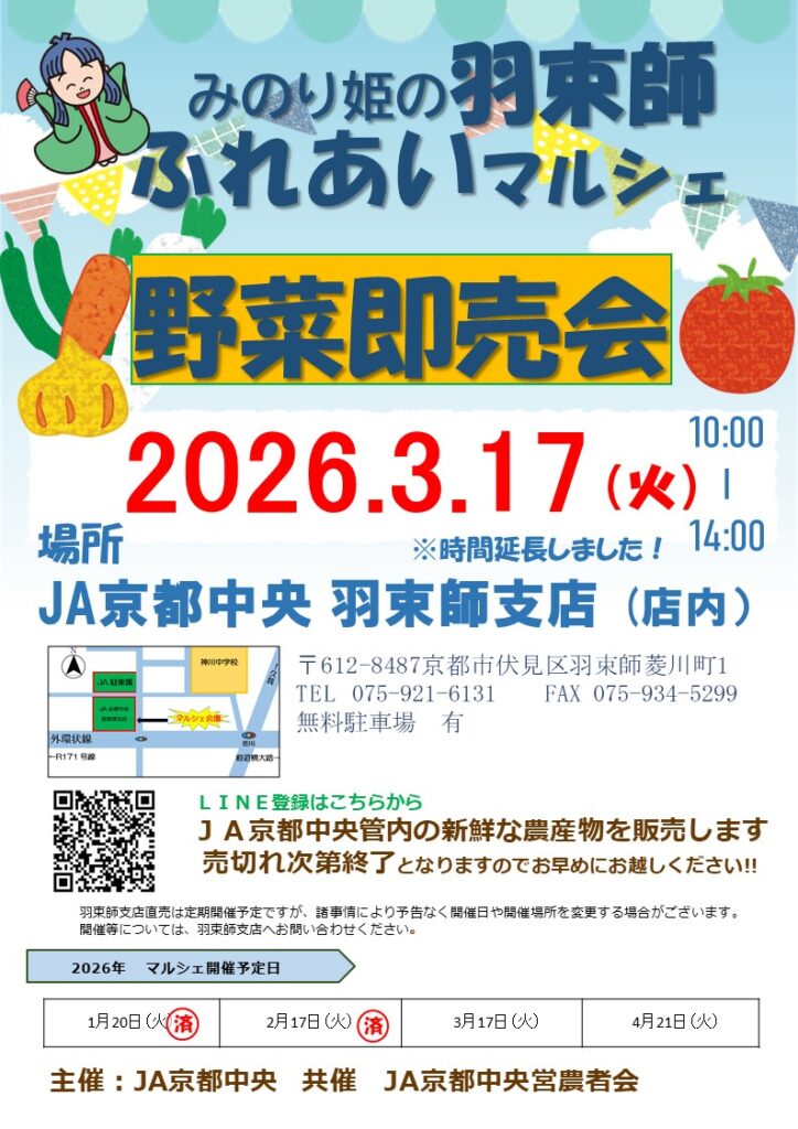 JA京都中央向島管内の新鮮な農産物を販売します!!
