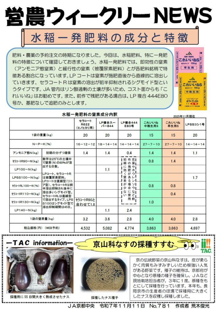 営農ウィークリー No.781